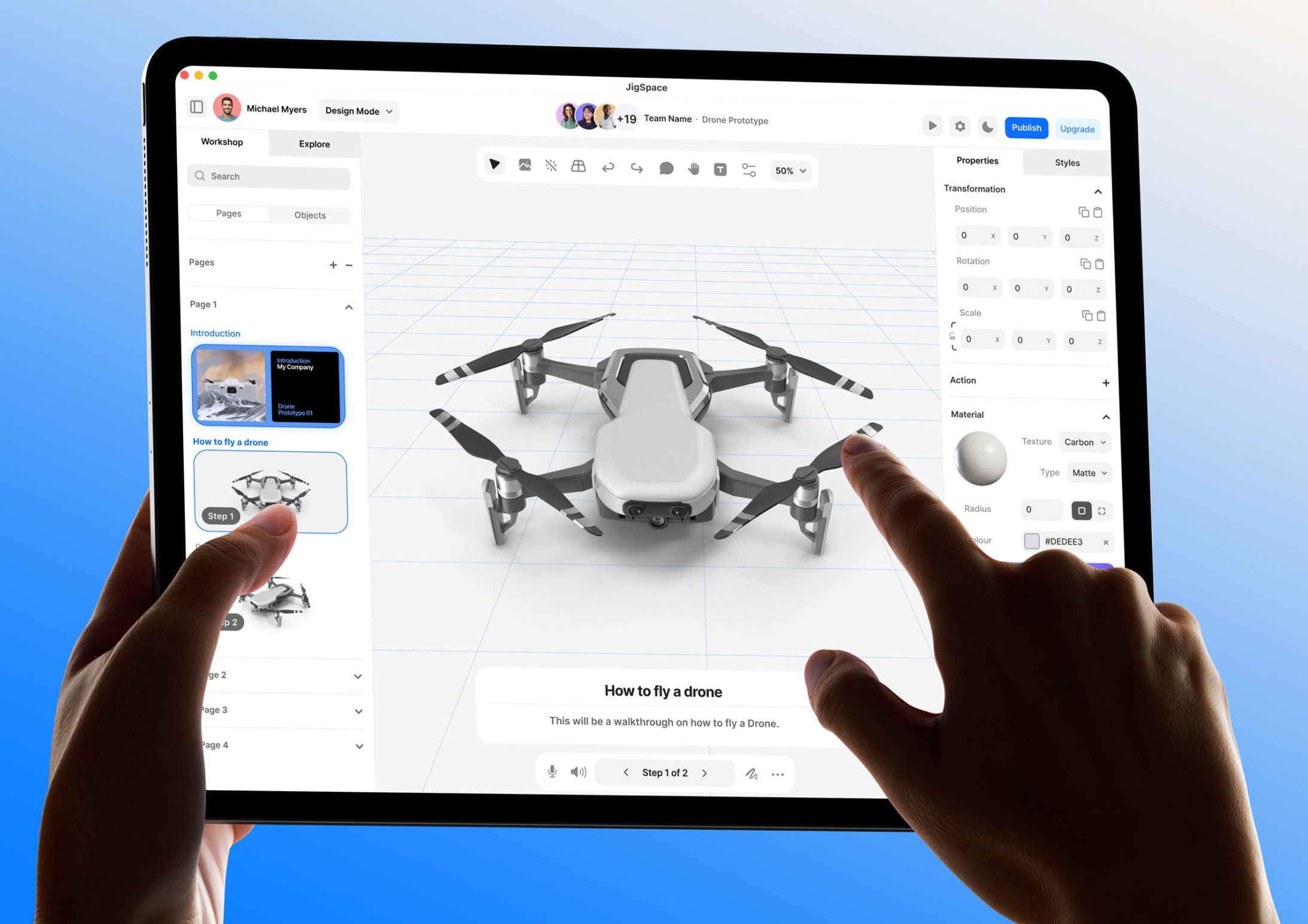 JigSpace simplified 3D creation by making it accessible across web, mobile, and spatial platforms. The product introduced intuitive tools for building interactive presentations and incorporated generative AI to support storytelling. A brand refresh aligned the company with the Apple Vision Pro launch, positioning it as a leader in accessible 3D/AR.
