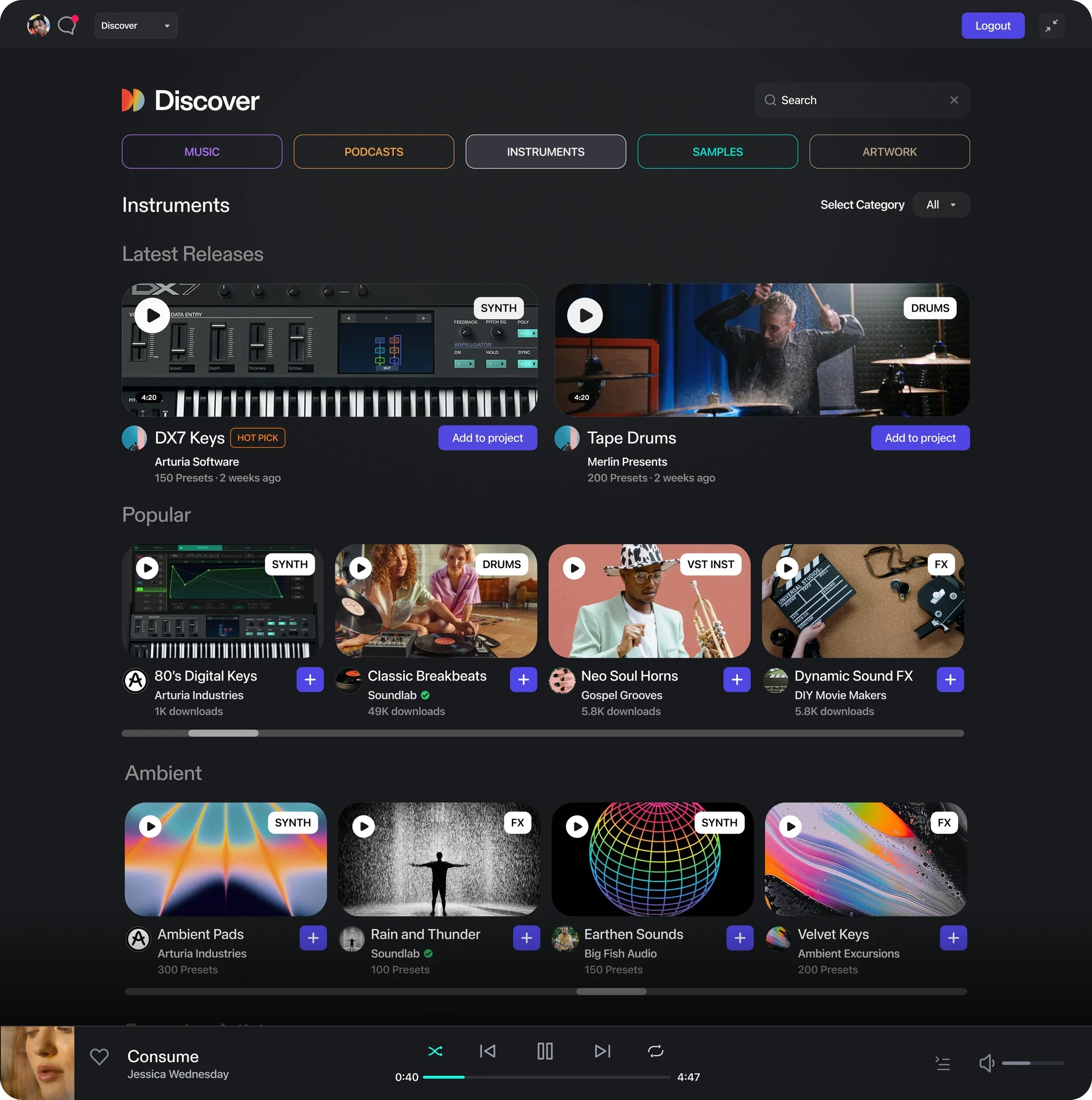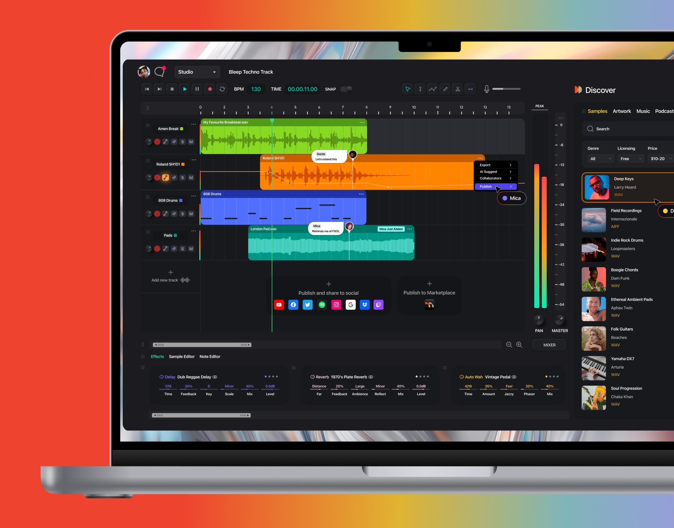I led product design and positioning, identifying the market opportunity and shaping the product vision. Beyond designing interfaces, I built the design system, interaction models, and prototypes that demonstrated how AI-native, cloud-based workflows could transform music production. My focus was on creating a product that could scale both as a music production tool and a distribution marketplace.