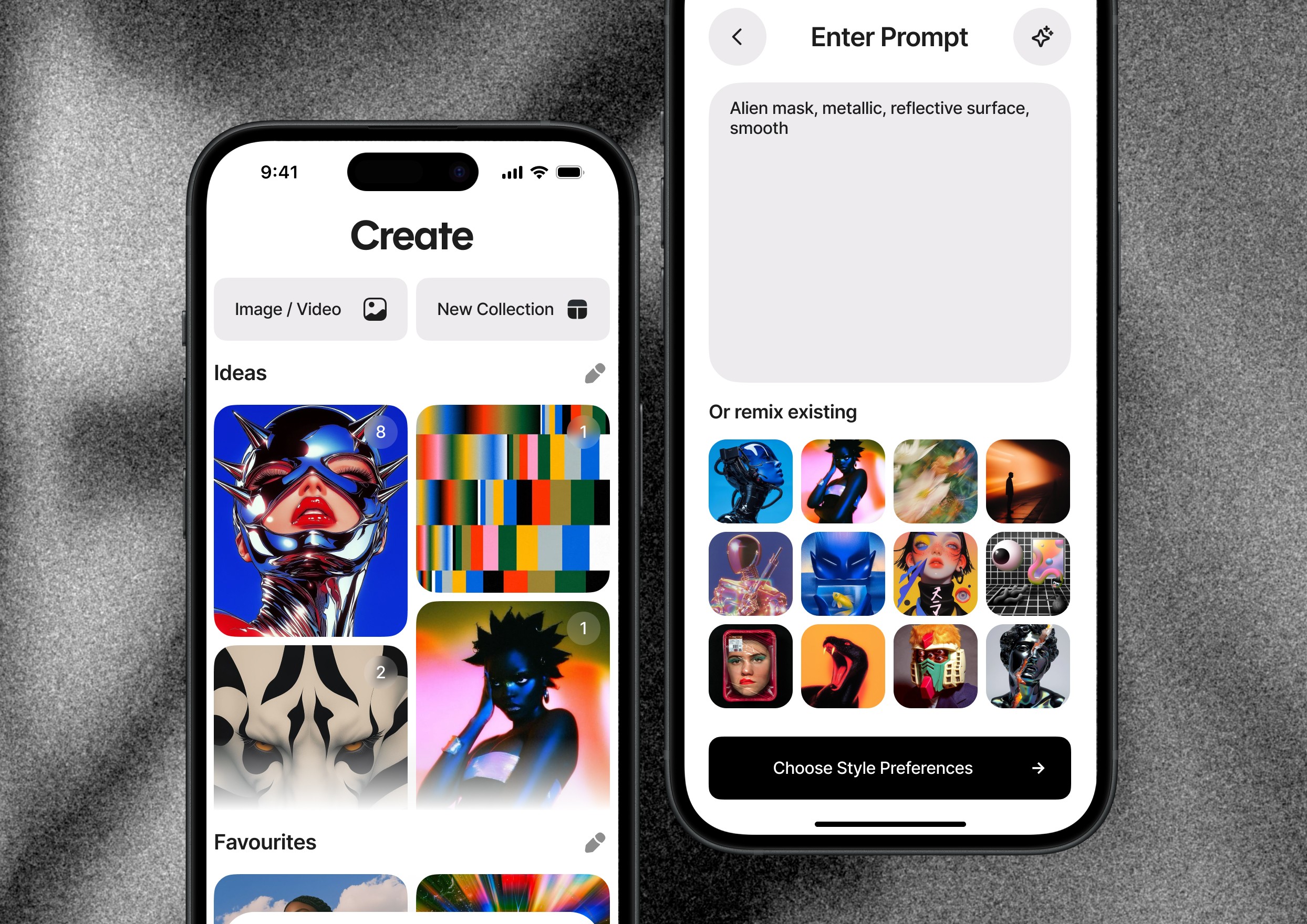 My role focused on product design, positioning and UI/UX. I defined how a mobile app could reduce friction, broaden the user base, and unlock new creative behaviours, while designing the interaction models and flows that made image generation feel native to mobile. This combined strategic framing with hands-on product design.
